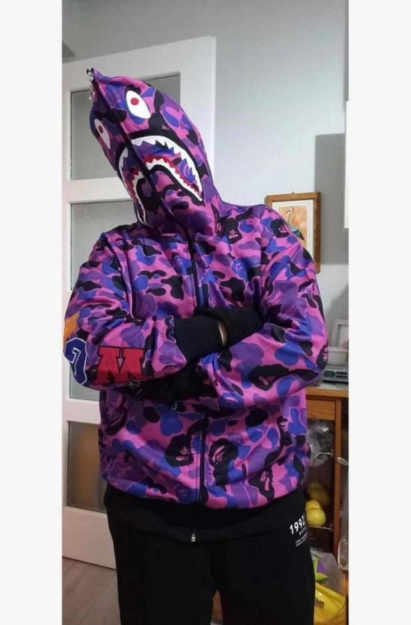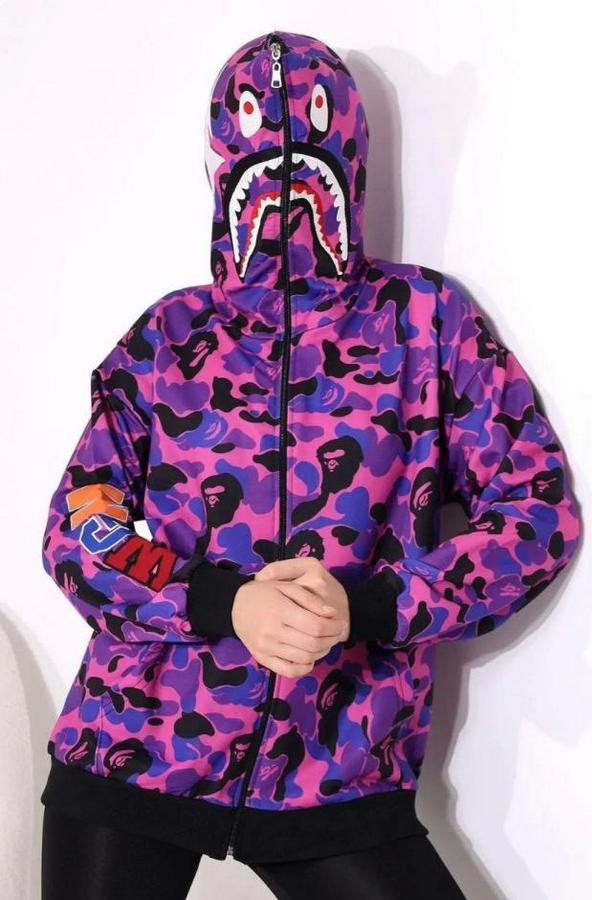 İki İplik Zıp Fermuarlı Nakışlı Kapşonlu Hırka - Mor