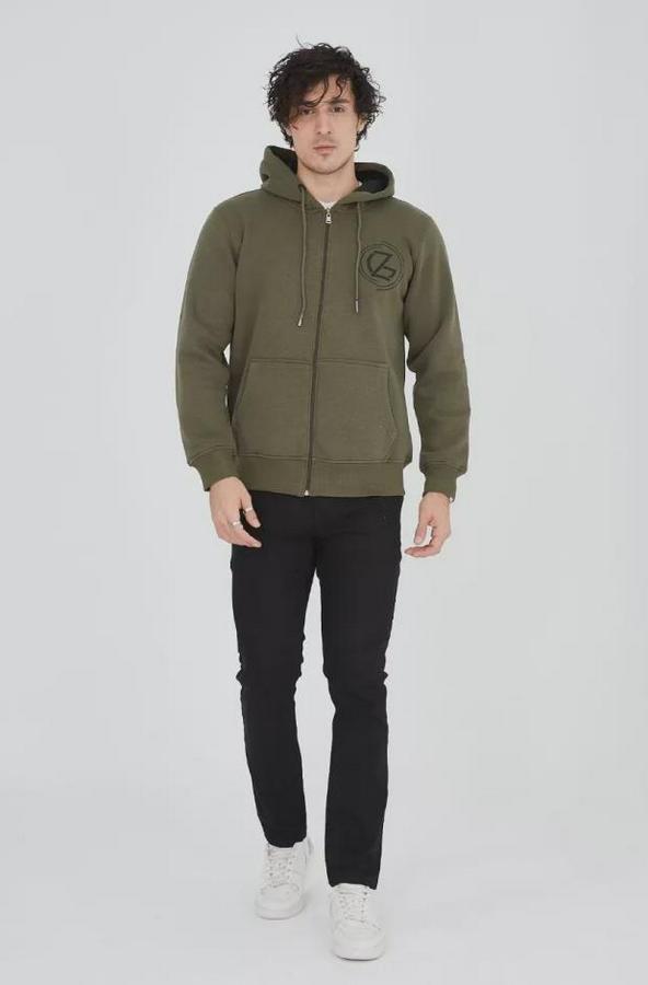 Erkek Kapüşonlu Baskılı Fermuarlı Hırka - Yeşil