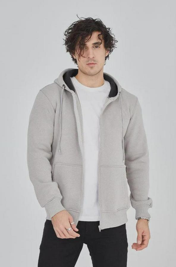 Erkek Kapüşonlu Düz Fermuarlı Hırka - Boyalı Gri