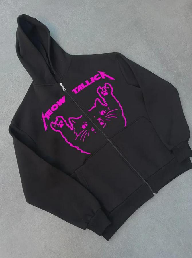AnasayfaTüm ÜrünlerÜst GiyimKazak & HırkaHırkaKışlık Baskılı Fermuarlı Kapüşonlu Hırka