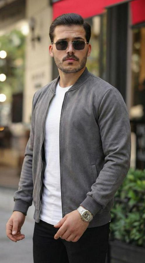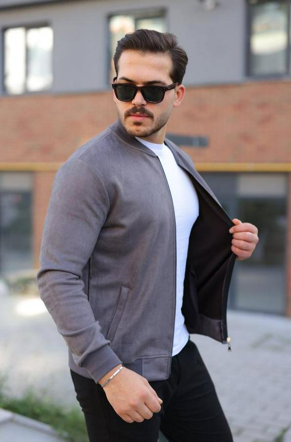 Erkek Scuba Süet Kumaş Bomber Hırka