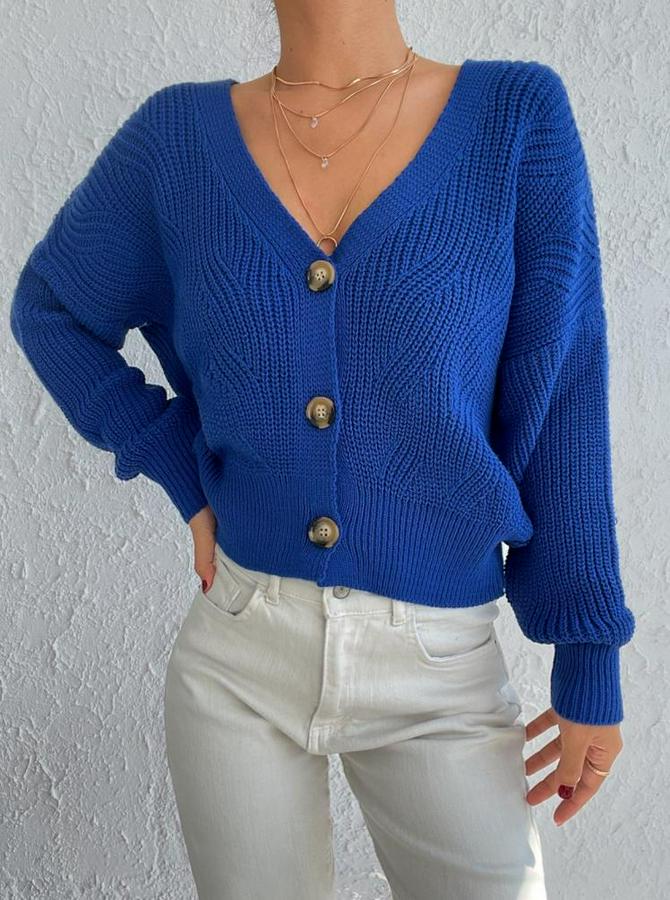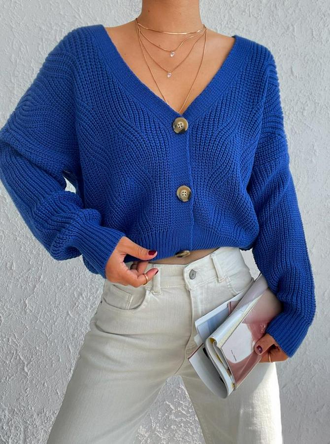 AnasayfaTüm ÜrünlerÜst GiyimKazak & HırkaHırkaUzun Kollu Düğme Detay Triko Hırka