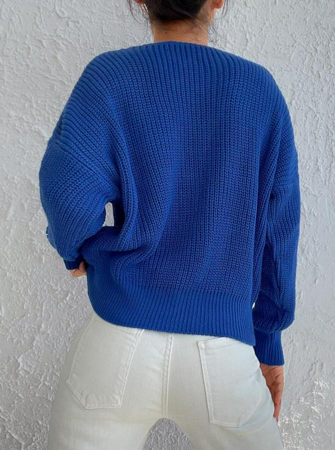 Kadın Uzun Kollu Düğme Detay Triko Hırka