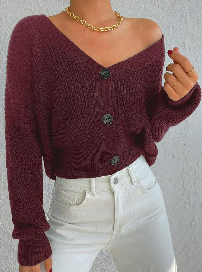 AnasayfaTüm ÜrünlerÜst GiyimKazak & HırkaHırkaUzun Kollu Üç Düğmeli Triko Hırka