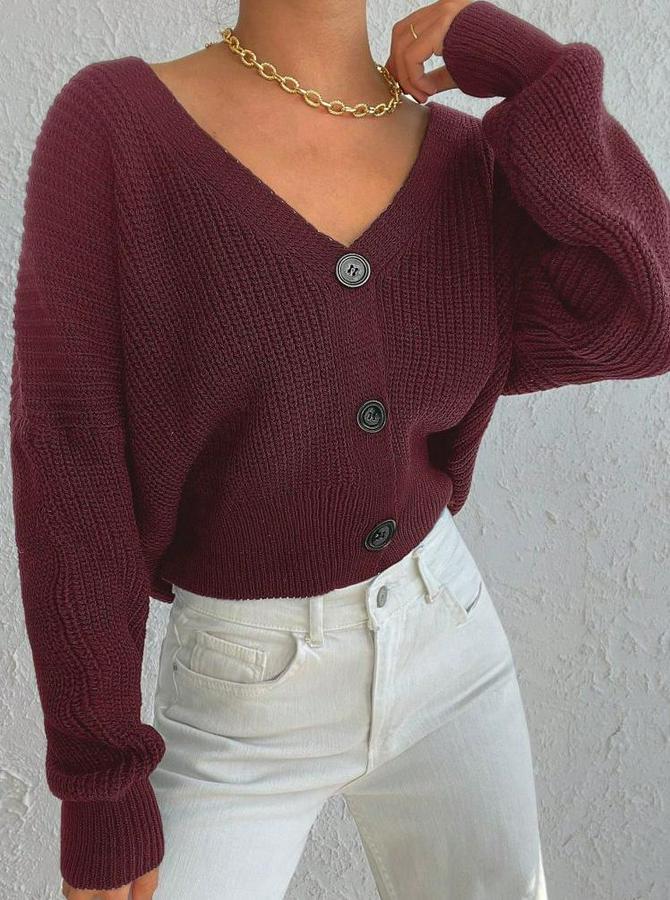 Uzun Kollu Üç Düğmeli Triko Hırka