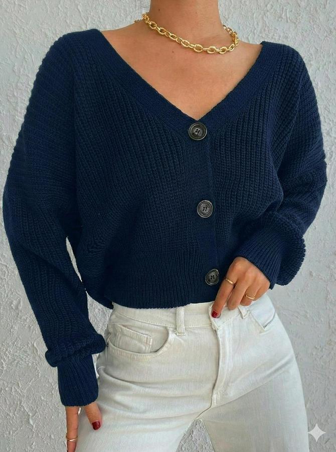 AnasayfaTüm ÜrünlerÜst GiyimKazak & HırkaHırkaUzun Kollu Üç Düğmeli Triko Hırka