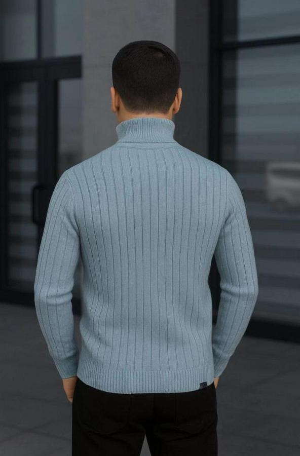Erkek Balıkcı Yaka Bağazlı Triko Kazak Pamuklu Kalın Fitilli Dokuma, Regular Fit Uzun Kollu Kışlık Model - Bebe Mavisi