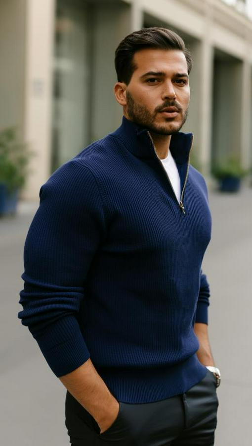 Balıkçı Zip Yaka Uzun Kollu Triko