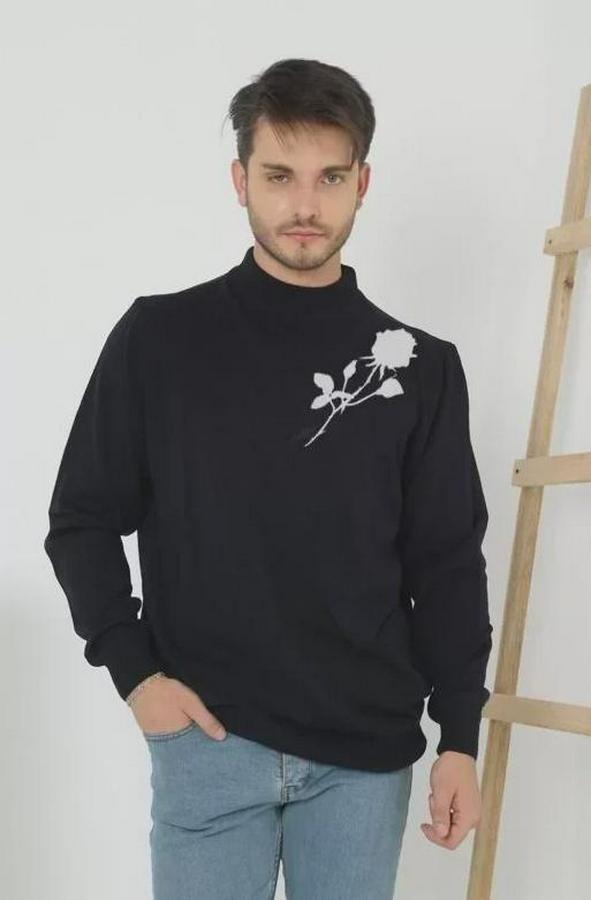 AnasayfaTüm ÜrünlerÜst GiyimKazak & HırkaKazakBaskılı Yarım Boğazlı Uzun Kol Dokuma Triko