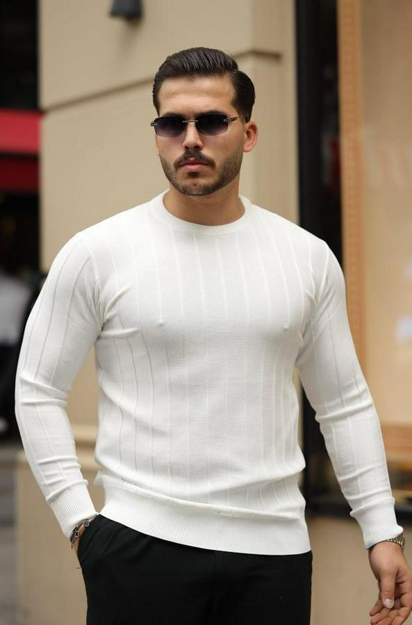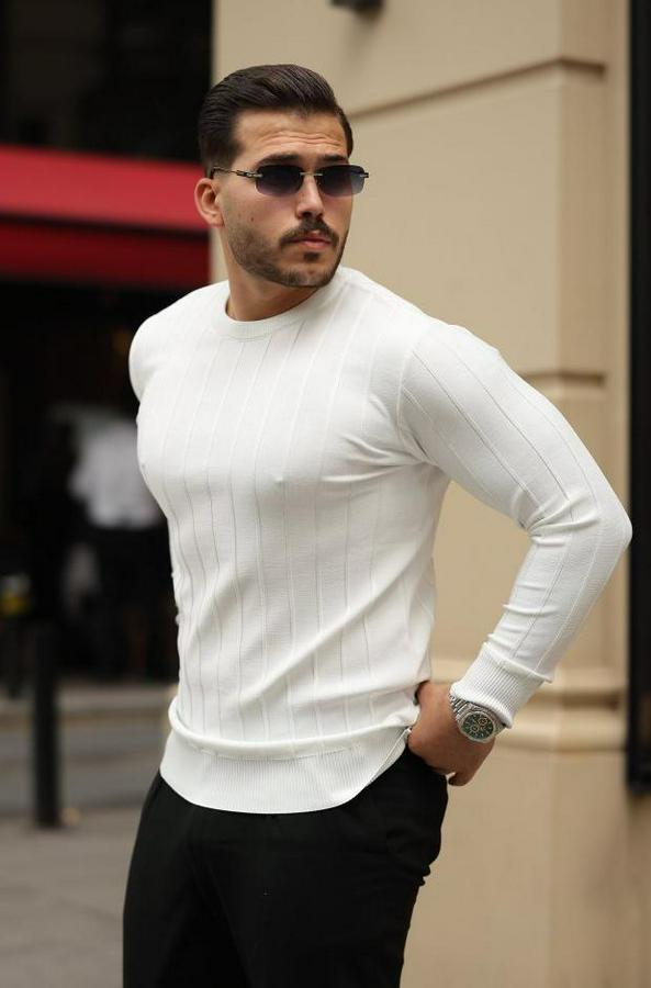 Bisiklet Yaka Çizgi Kabartmalı Uzun Kollu Triko