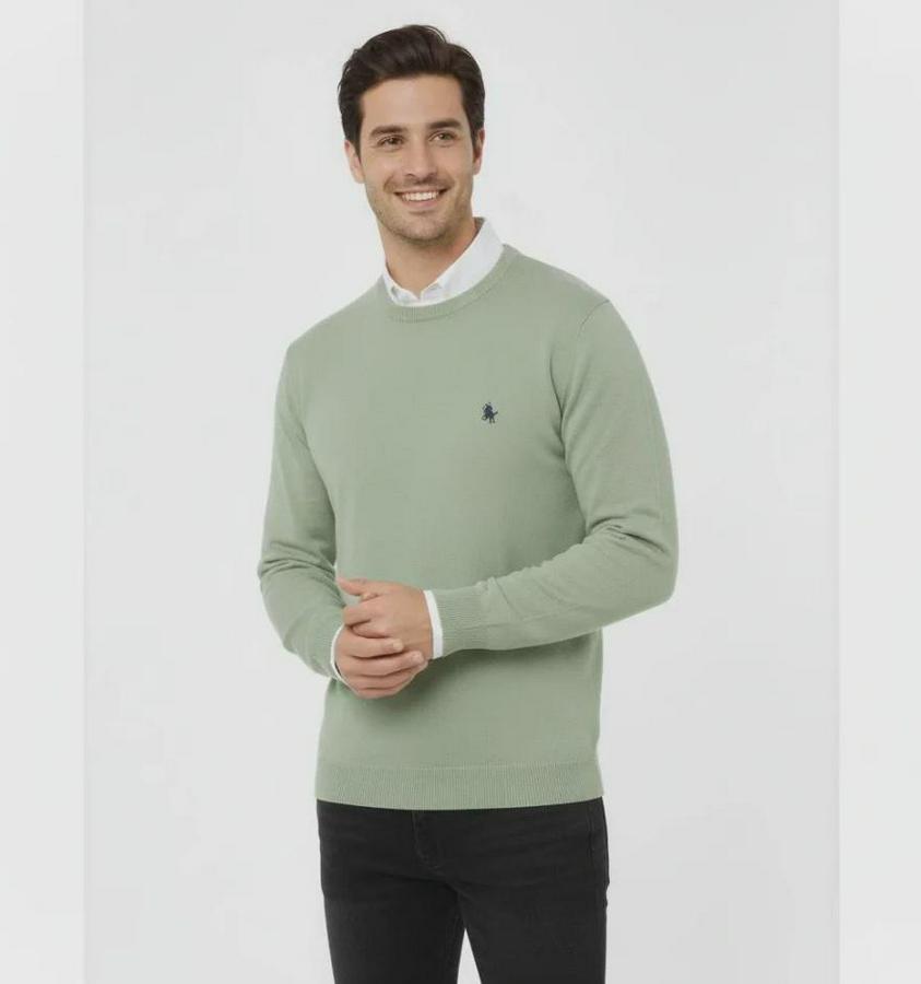 Erkek Bisiklet Yaka Nakış Işlemeli Triko Kazak Yumuşak Dokulu Pamuklu Ince Dokuma, Uzun Kollu Rahat Regular Kalıp - Mint Yeşili