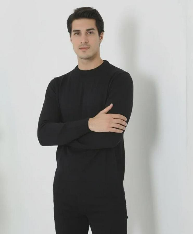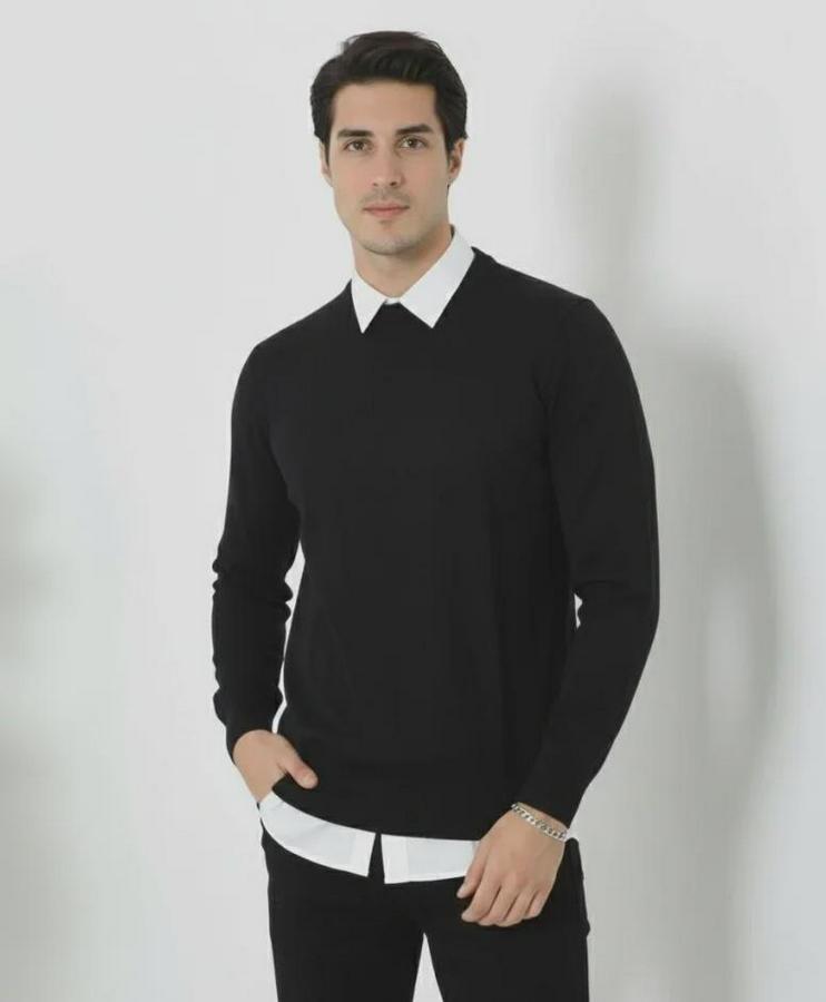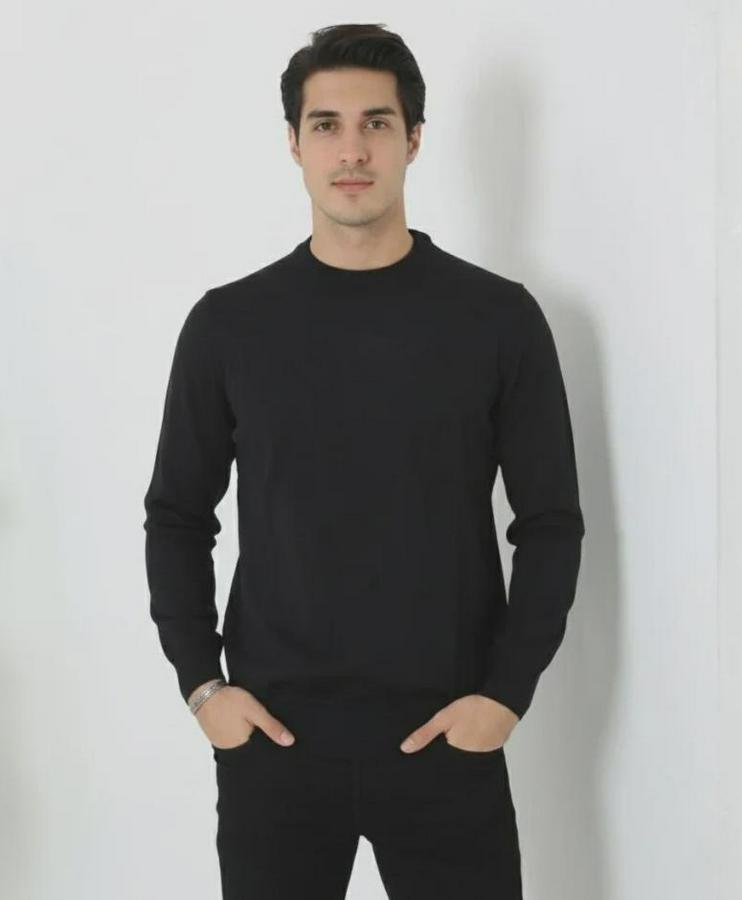 Erkek Bisiklet Yaka Triko Kazak Yumuşak Dokulu Pamuklu Ince Dokuma, Uzun Kollu Rahat Regular Kalıp - Siyah