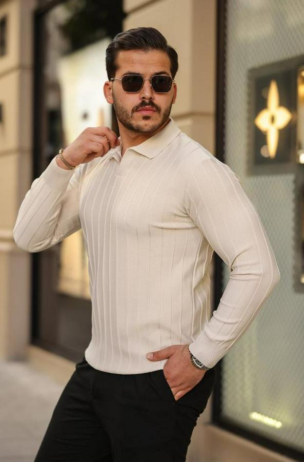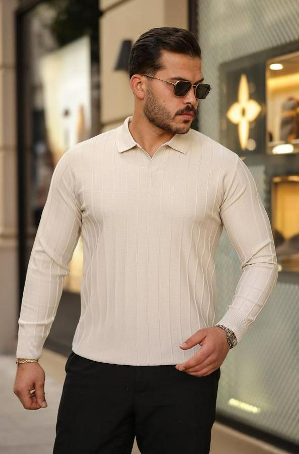 Erkek çizgi Kabartmalı Uzun Kollu Triko