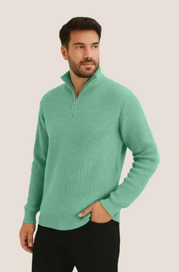 Erkek Fitilli Triko Kazak 3’lü Set – Mint Yeşili, Siyah, Bej Kalın Dokuma Pamuklu Regular Fit V Yaka Fermuarlı Uzun Kollu Rahat Kışlık Kazak Kombini