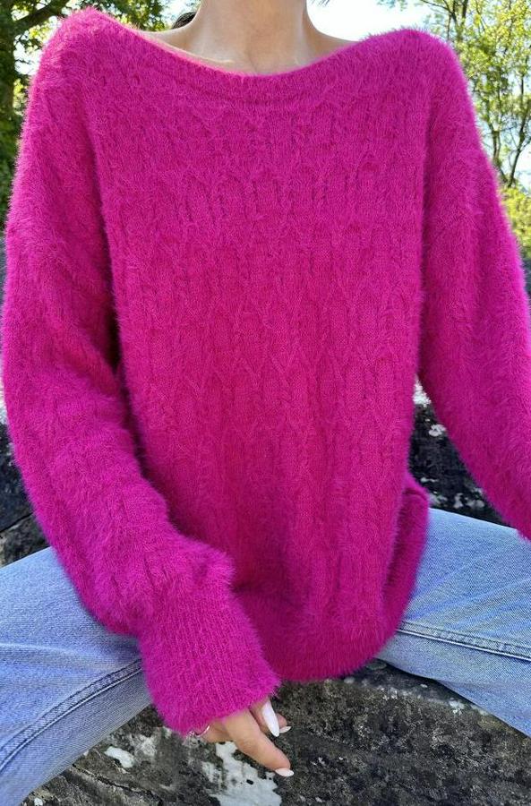 AnasayfaTüm ÜrünlerÜst GiyimKazak & HırkaKazakFuşya Baklava Desenli Triko Kazak
