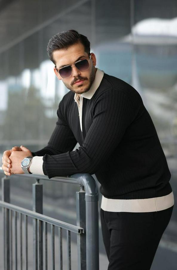 Erkek Kol Ve Yaka Detaylı Uzun Kollu Triko