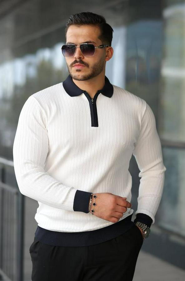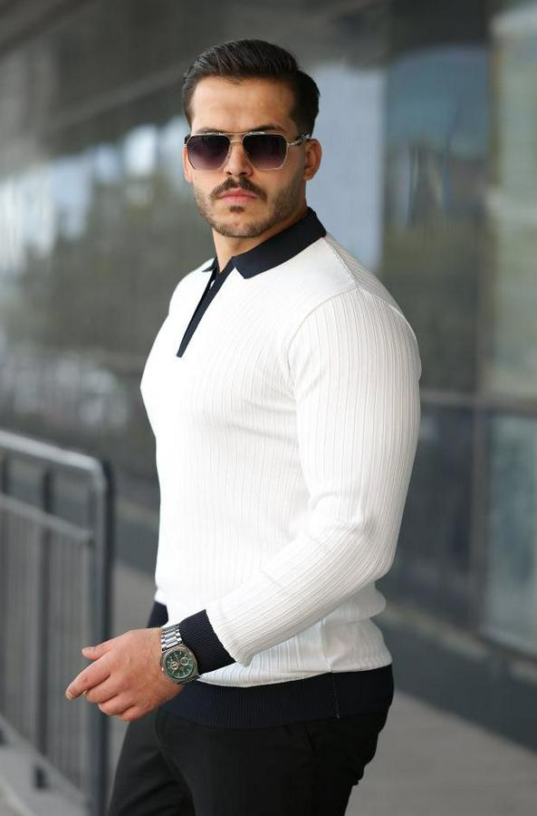 Erkek Kol Ve Yaka Detaylı Uzun Kollu Triko