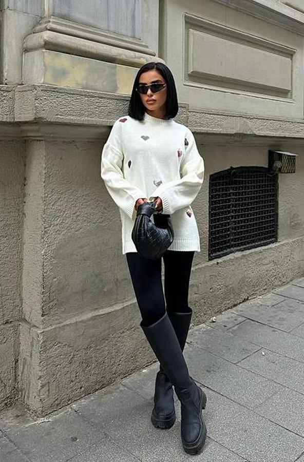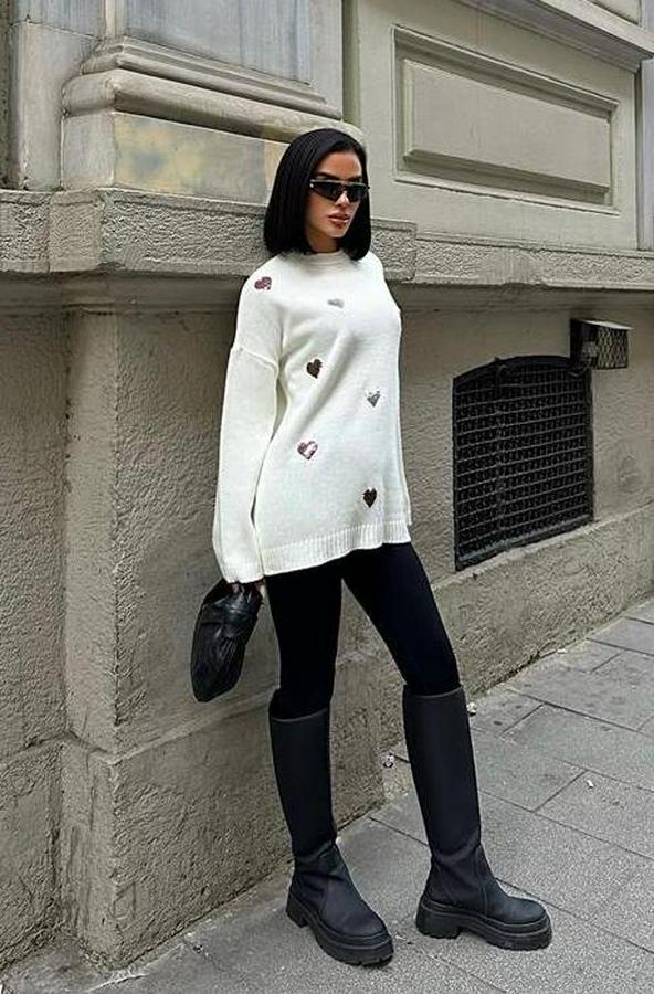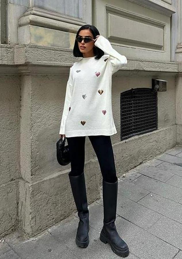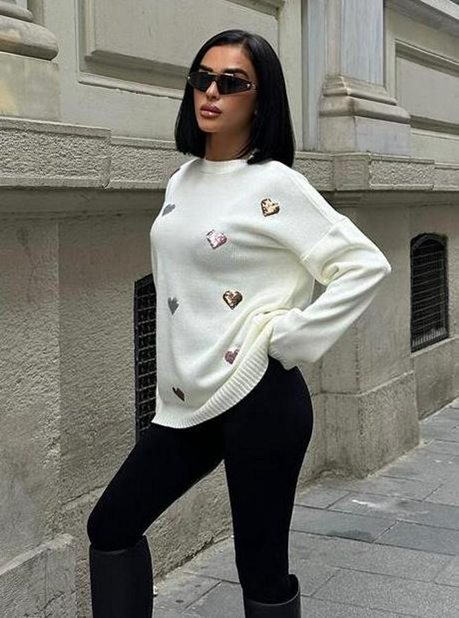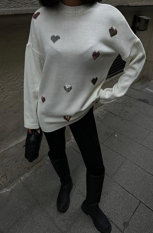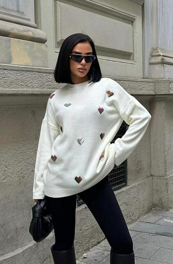 AnasayfaTüm ÜrünlerÜst GiyimKazak & HırkaKazakMolly Kalp Desenli Triko Örme Kazak 1339
