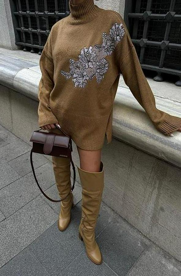 AnasayfaTüm ÜrünlerÜst GiyimKazak & HırkaKazakNakış Detaylı Triko Kazak 1340