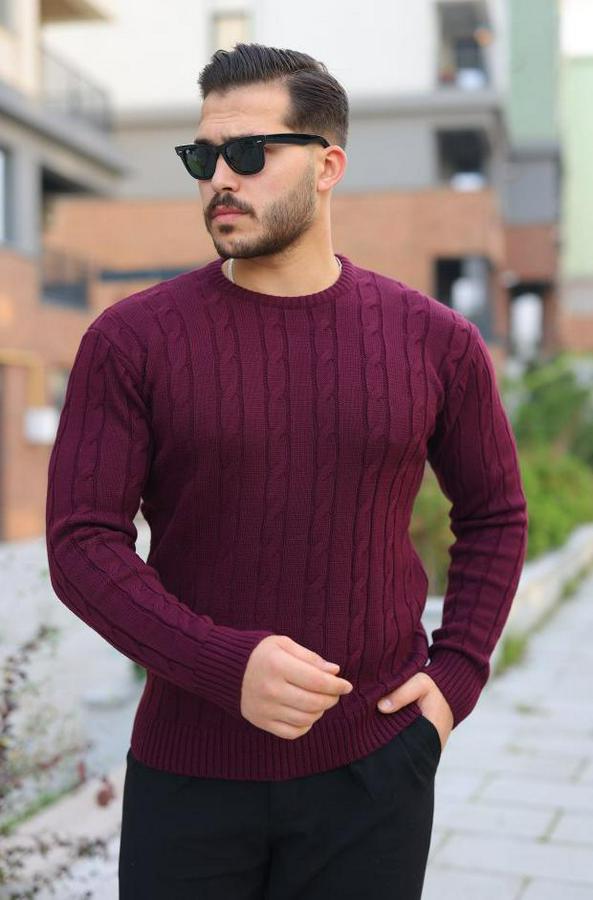 AnasayfaTüm ÜrünlerÜst GiyimKazak & HırkaKazakÖrgü Desen Bisiklet Yaka Kazak