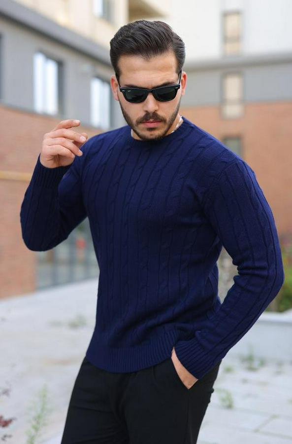 AnasayfaTüm ÜrünlerÜst GiyimKazak & HırkaKazakÖrgü Desen Bisiklet Yaka Kazak