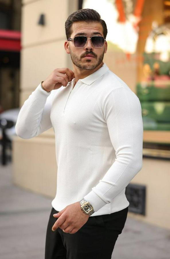 Erkek Pirinç Desenli Uzun Kollu Yakalı Triko