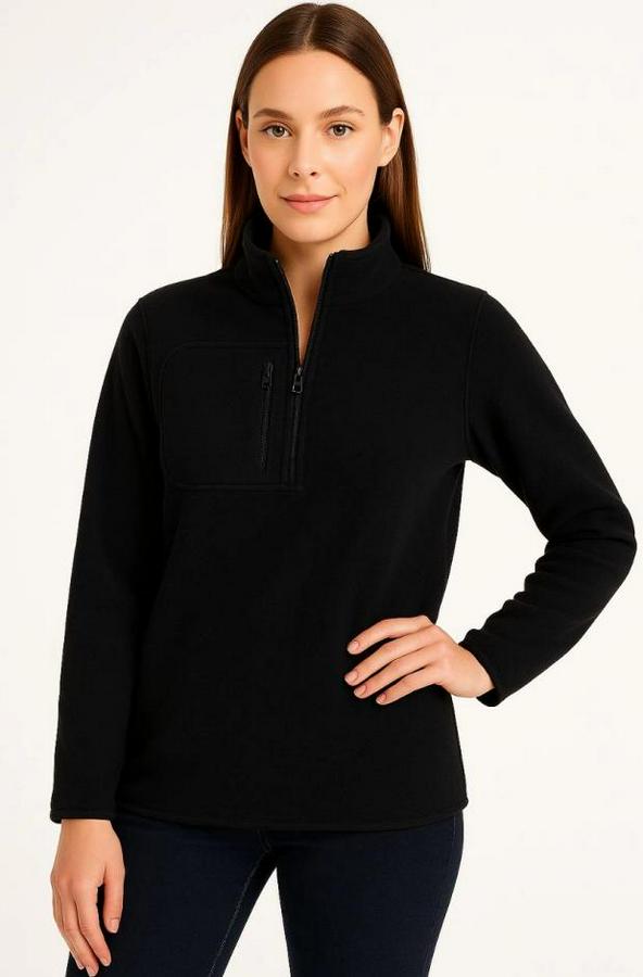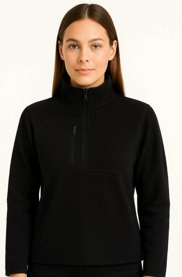 Polar Kazak – Dik Yaka, Yarım Fermuarlı, Fermuarlı Göğüs Cepli, Siyah Biyeli, Kışlık Rahat Regular Fit Günlük Model