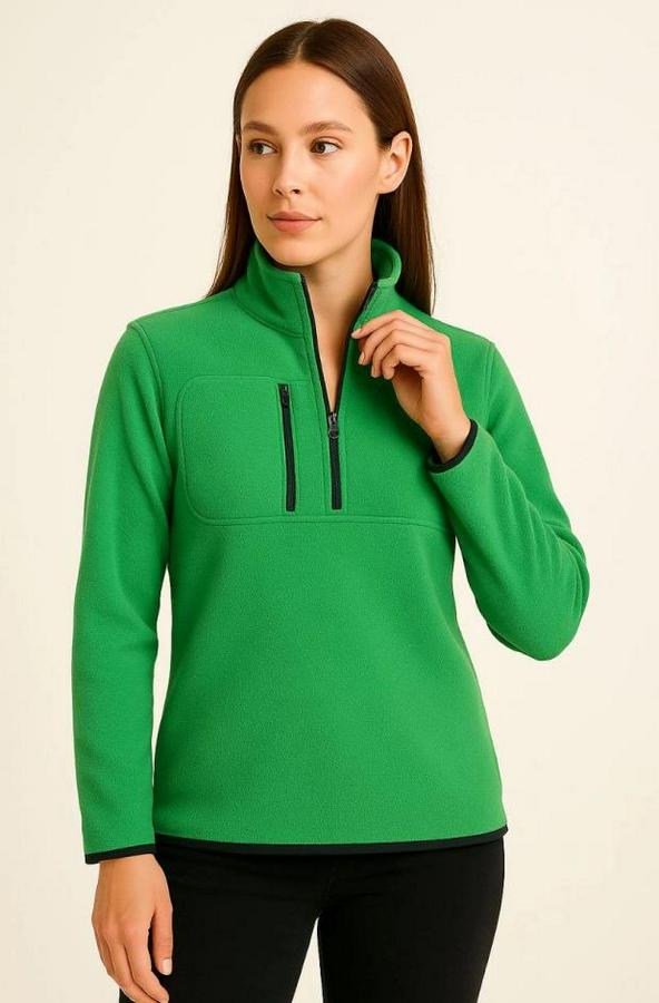 Polar Kazak – Dik Yaka, Yarım Fermuarlı, Fermuarlı Göğüs Cepli, Siyah Biyeli, Kışlık Rahat Regular Fit Günlük Model - Yeşil