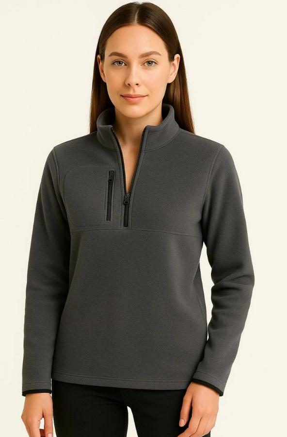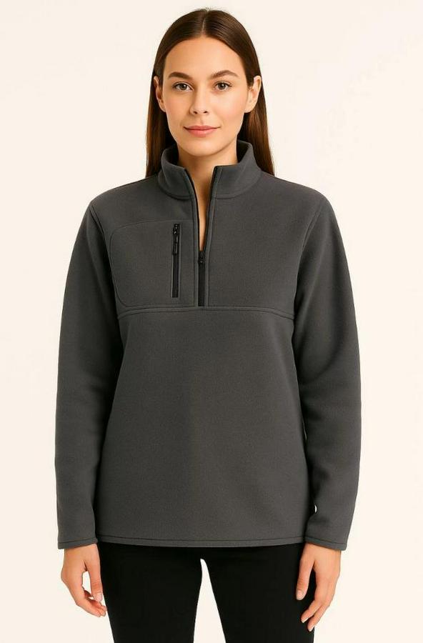 Polar Kazak – Dik Yaka, Yarım Fermuarlı, Fermuarlı Göğüs Cepli, Siyah Biyeli, Kışlık Rahat Regular Fit Günlük Model - Füme
