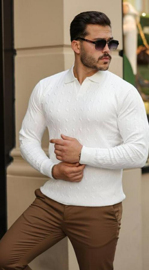 Erkek Saç örgü Desen Uzun Kollu Triko