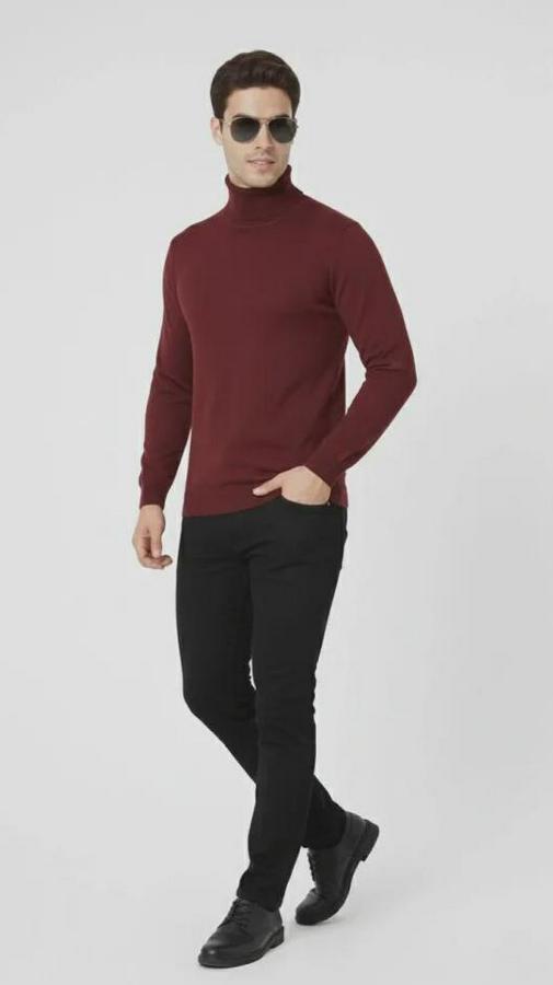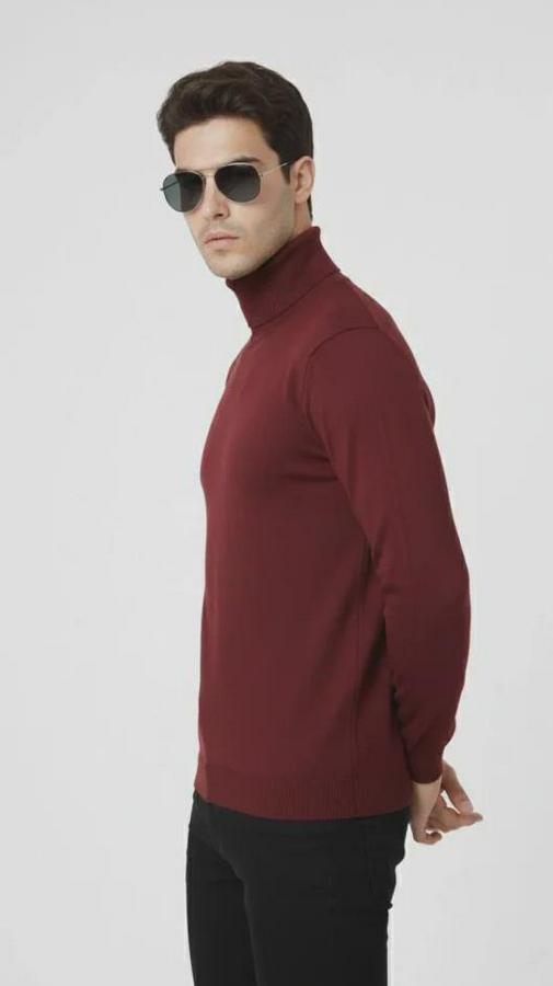 Tam Boğazlı Balıkcı Yaka Triko Kazak Yumuşak Dokulu Pamuklu Ince Dokuma, Uzun Kollu Rahat Regular Kalıp - Bordo