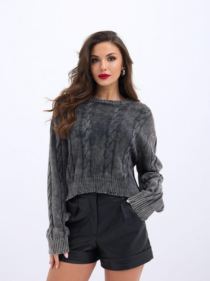 AnasayfaTüm ÜrünlerÜst GiyimBluz & TunikBluzTriko Saç Örgü Kazak-Antrasit
