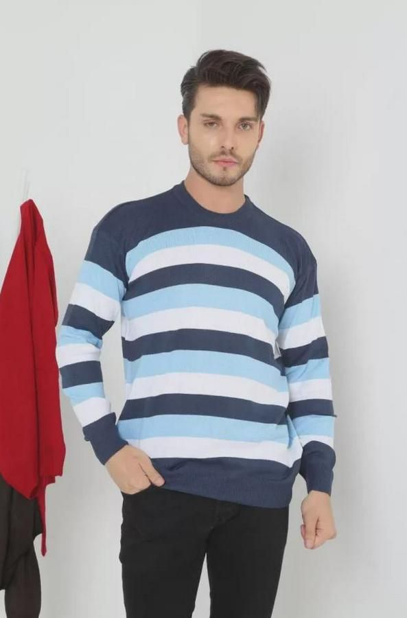AnasayfaTüm ÜrünlerÜst GiyimKazak & HırkaKazakUnisex Kalın Çizgili Bisiklet Yaka Triko Kazak