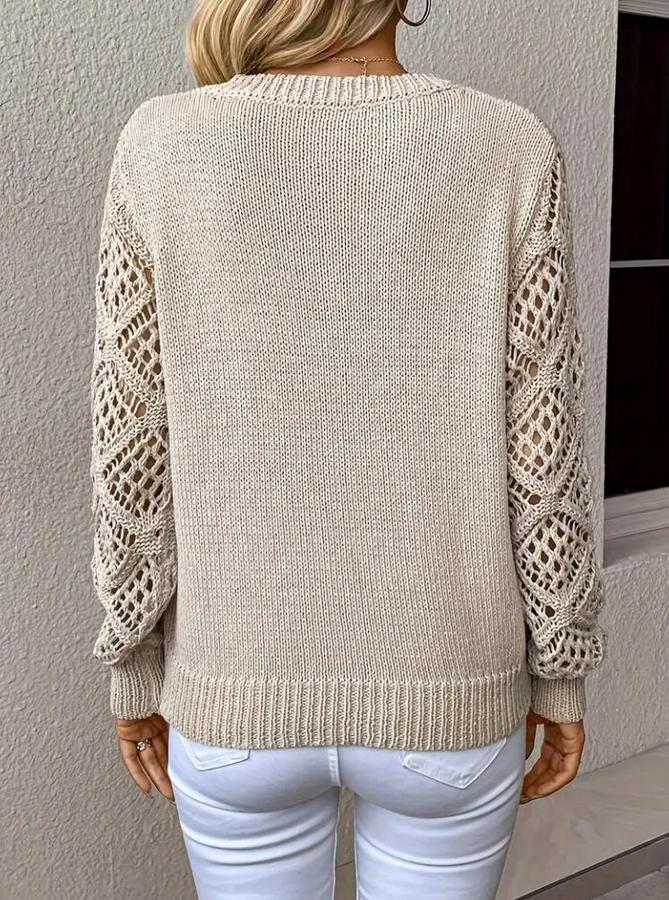 Kadın Uzun Kollu V Yaka Kol Delikli Baklava Desen Detaylı Triko Kazak