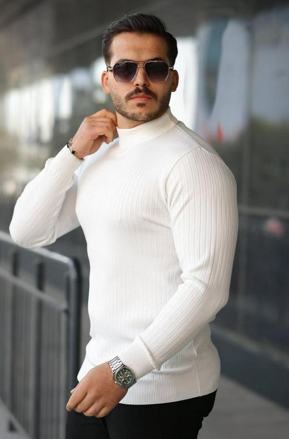AnasayfaTüm ÜrünlerÜst GiyimKazak & HırkaKazakYarım Balıkçı Yaka Fitilli Triko