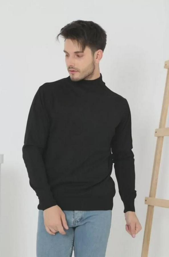 Erkek Yarım Balıkçı Yaka Triko Kazak - Siyah