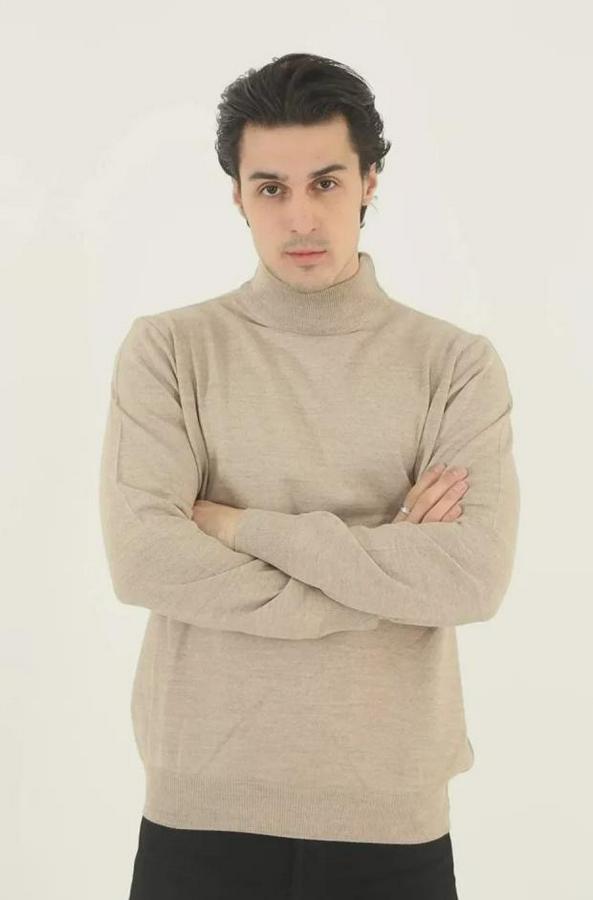 Erkek Yarım Balıkçı Yaka Triko Kazak - Bej