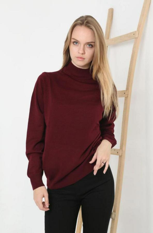 Yarım Boğaz Triko Kazak Yumuşak Dokulu Pamuklu Ince Dokuma, Uzun Kollu Rahat Regular Kalıp - Bordo