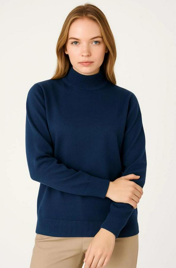 Yarım Boğaz Triko Kazak Yumuşak Dokulu Pamuklu Ince Dokuma, Uzun Kollu Rahat Regular Kalıp - Lacivert