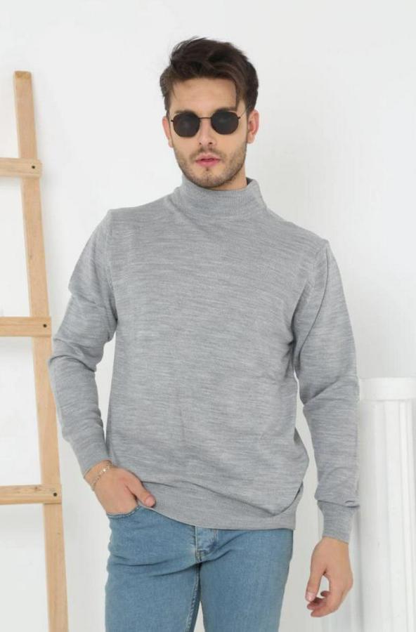 Erkek Yarım Boğaz Triko Kazak Yumuşak Dokulu Pamuklu Ince Dokuma, Uzun Kollu Rahat Regular Kalıp - Gri