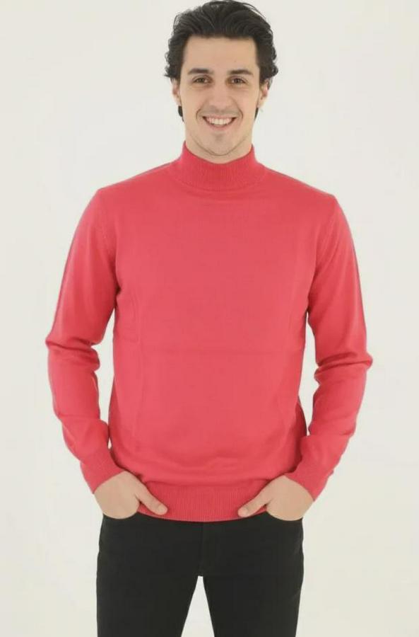 Erkek Yarım Boğaz Triko Kazak Yumuşak Dokulu Pamuklu Ince Dokuma, Uzun Kollu Rahat Regular Kalıp - Pembe