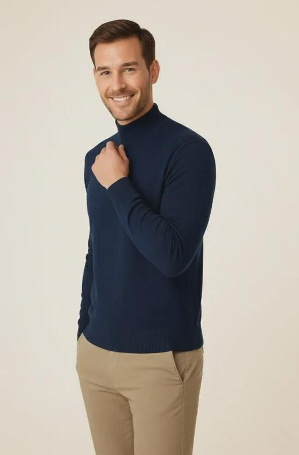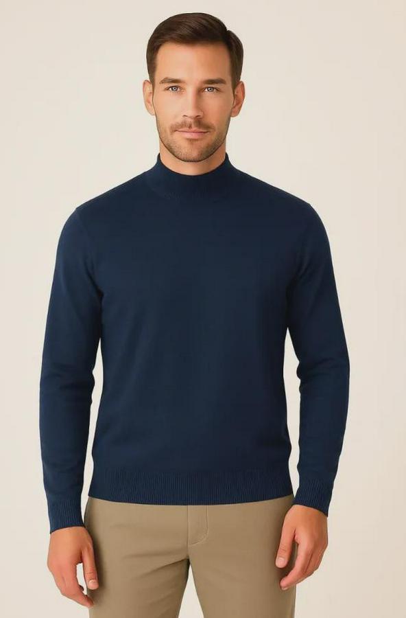 Erkek Yarım Boğaz Triko Kazak Yumuşak Dokulu Pamuklu Ince Dokuma, Uzun Kollu Rahat Regular Kalıp - Lacivert