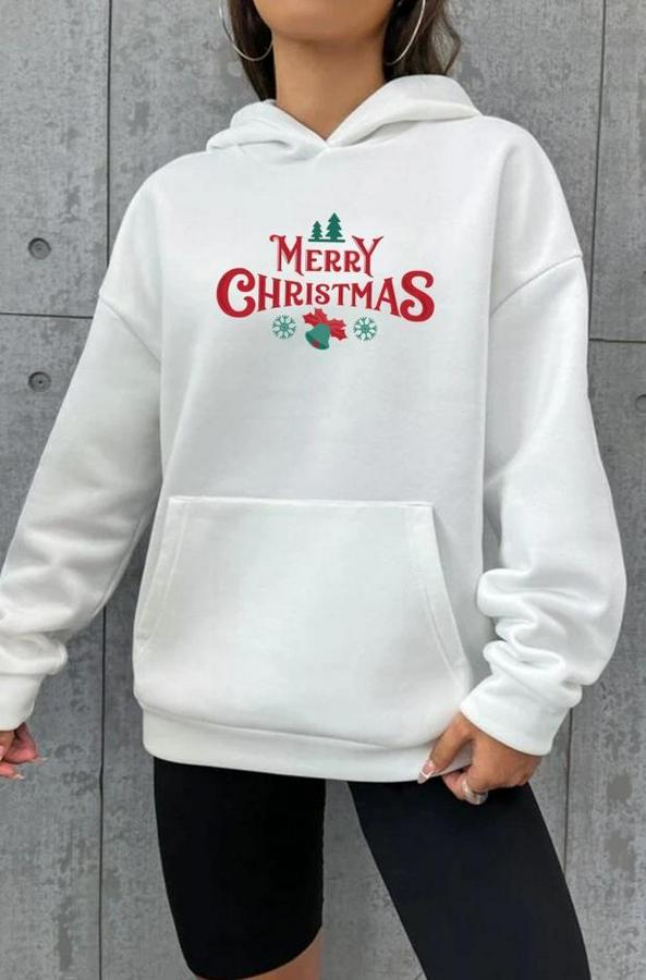 Merry Chrıstmas Sweatshirt & Hodie - Beyaz