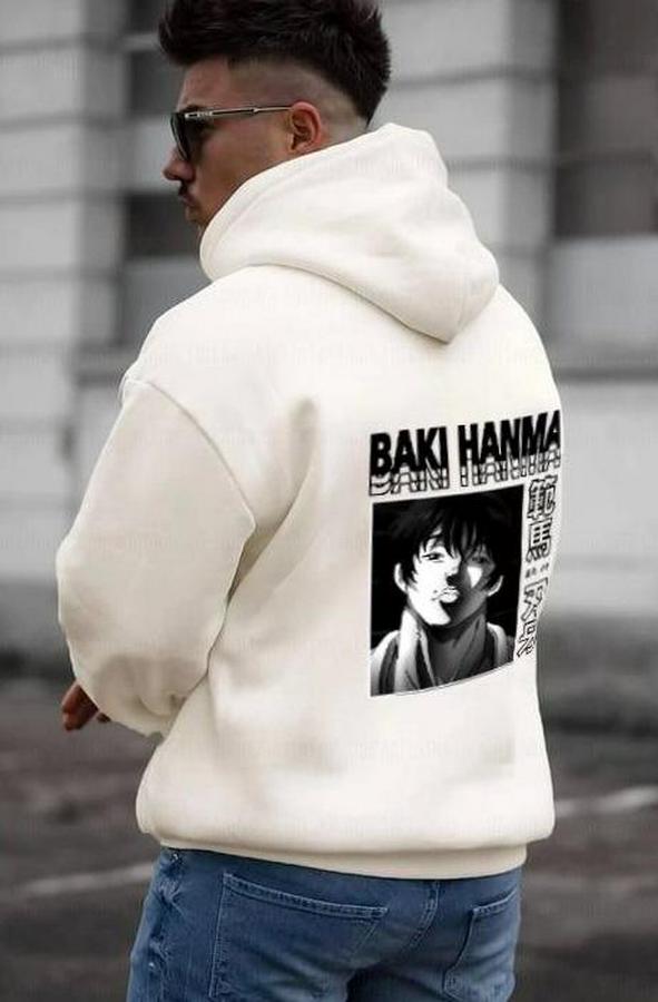 Erkek Baskılı Kapüşonlu Ve Kordon İpli Sweat - Beyaz