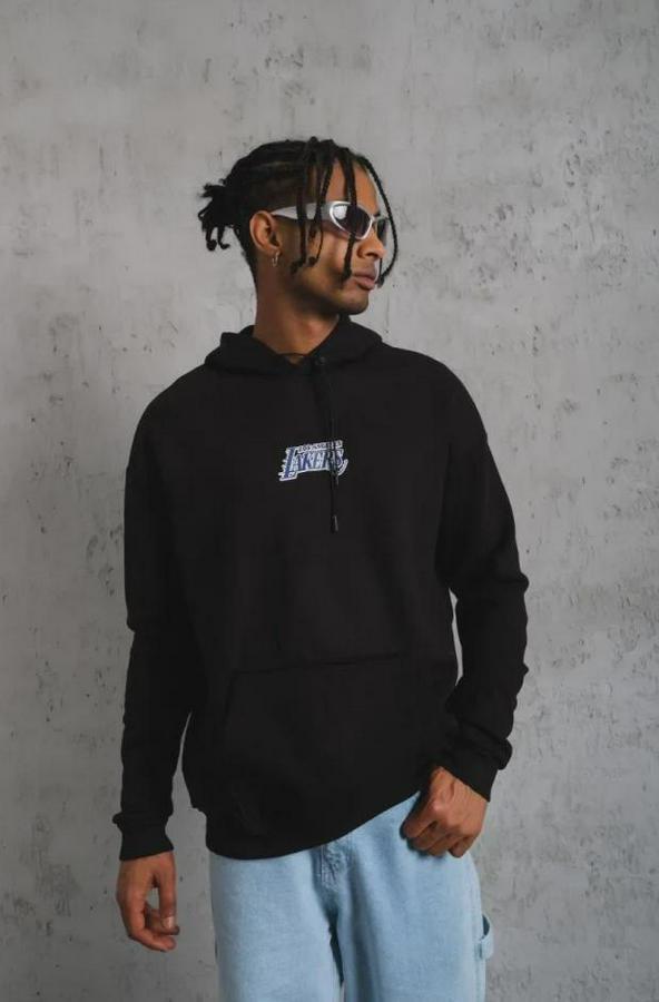 Erkek Baskılı Oversize Üç İplik Kapüşonlu Sweatshirt - Siyah