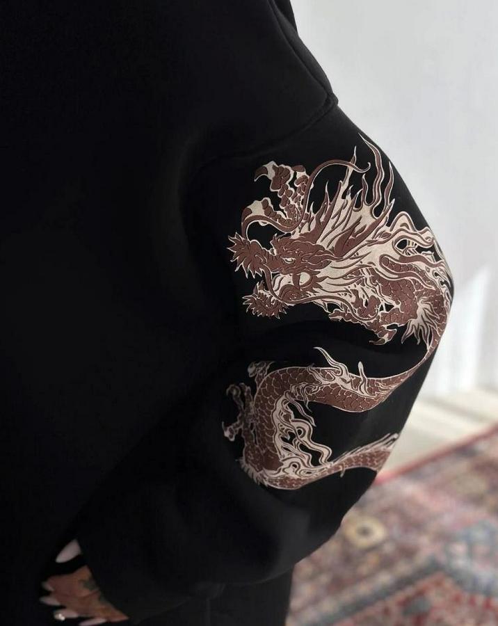 Bisiklet Yaka Baskılı SweatShirt - Siyah
