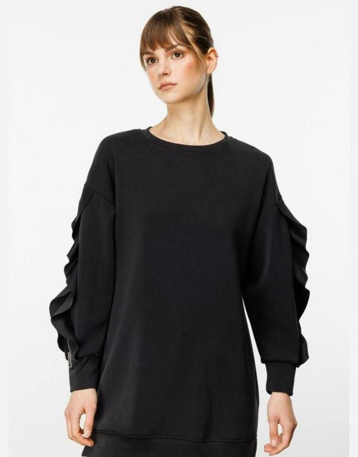 AnasayfaTüm ÜrünlerÜst GiyimSweatshirtBisiklet Yaka Kolları Volan Detay Üç Iplik Kumaş Sweat