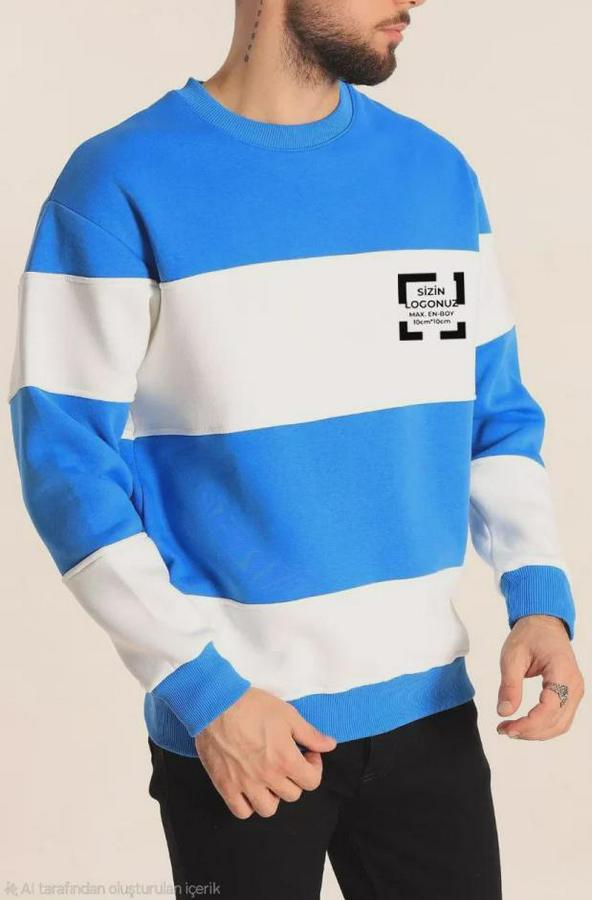 AnasayfaTüm ÜrünlerÜst GiyimSweatshirtBisiklet Yaka Parçalı Özel Üretim Sweatshirt- Mavi