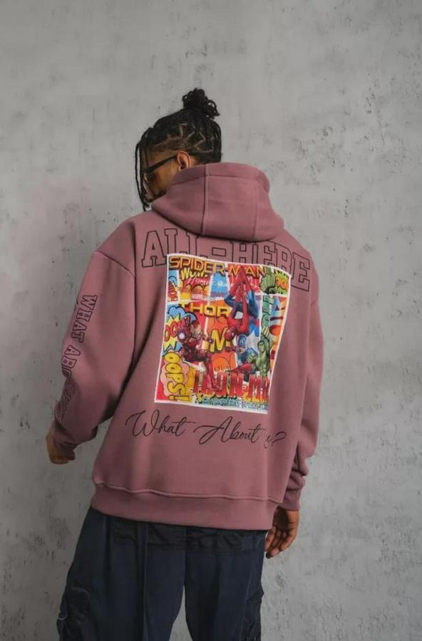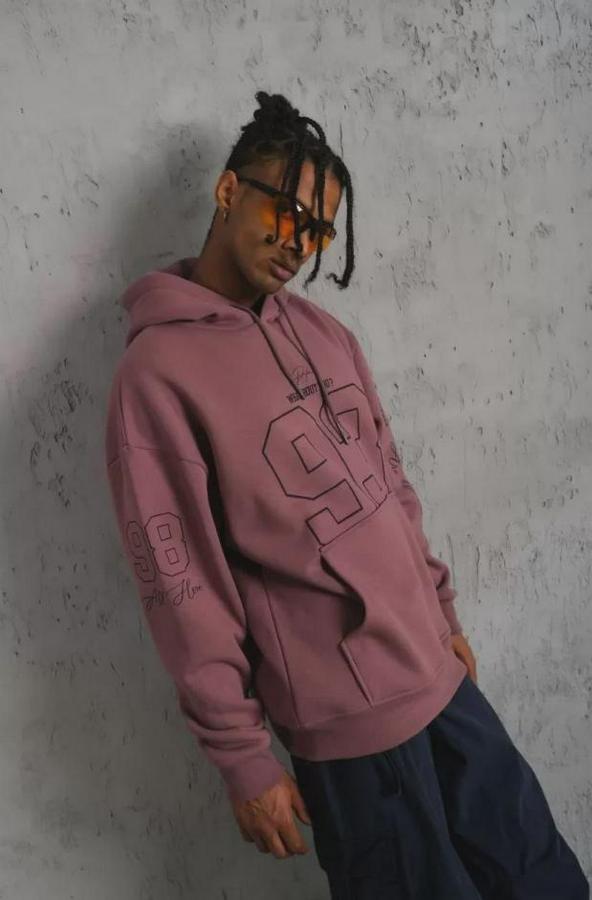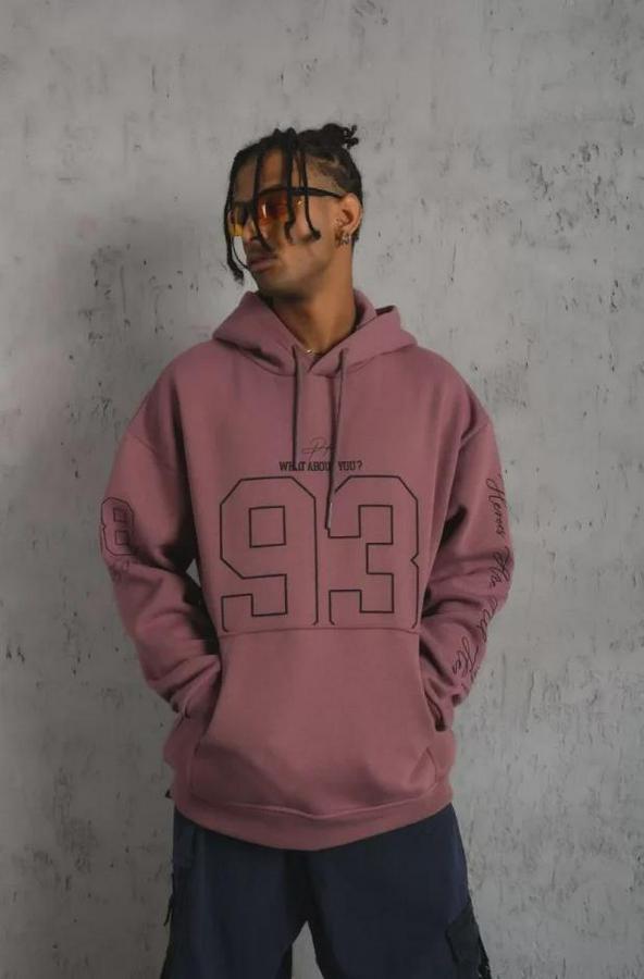 Erkek 93 Dijital Parça Baskılı Kapşonlu Sweat - Gül Kurusu