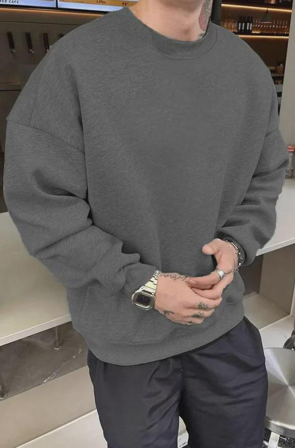 Erkek Düz Bisiklet Yaka Sweat - Füme